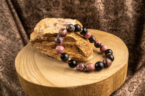 Rose Gold Lion | Rhodonite & Black Obsidian
